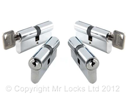 Almost all lock cylinders fitted to PVC doors are Euro profile type Locks or Euro Locks for short. Euro cylinders are available in a standard 5 pin or 6 pin versions, they can also have hardened pins to protect against drilling and have more recently become available in a British Standard kite marked version. Mr Locks also supply our own high security registered profile range of Euro cylinders which are anti-pick, anti-drill, anti-bump and anti-snap, and can also be supplied keyed alike or as part of a master keyed system.